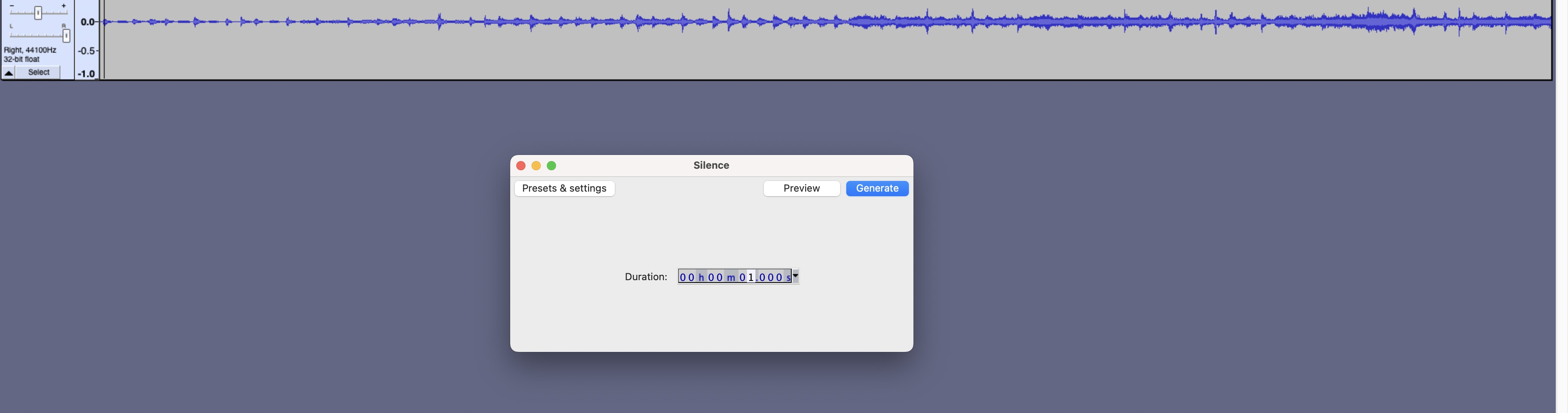 Click on the Generate option to add a silence into the second audio clip for the overlap.
