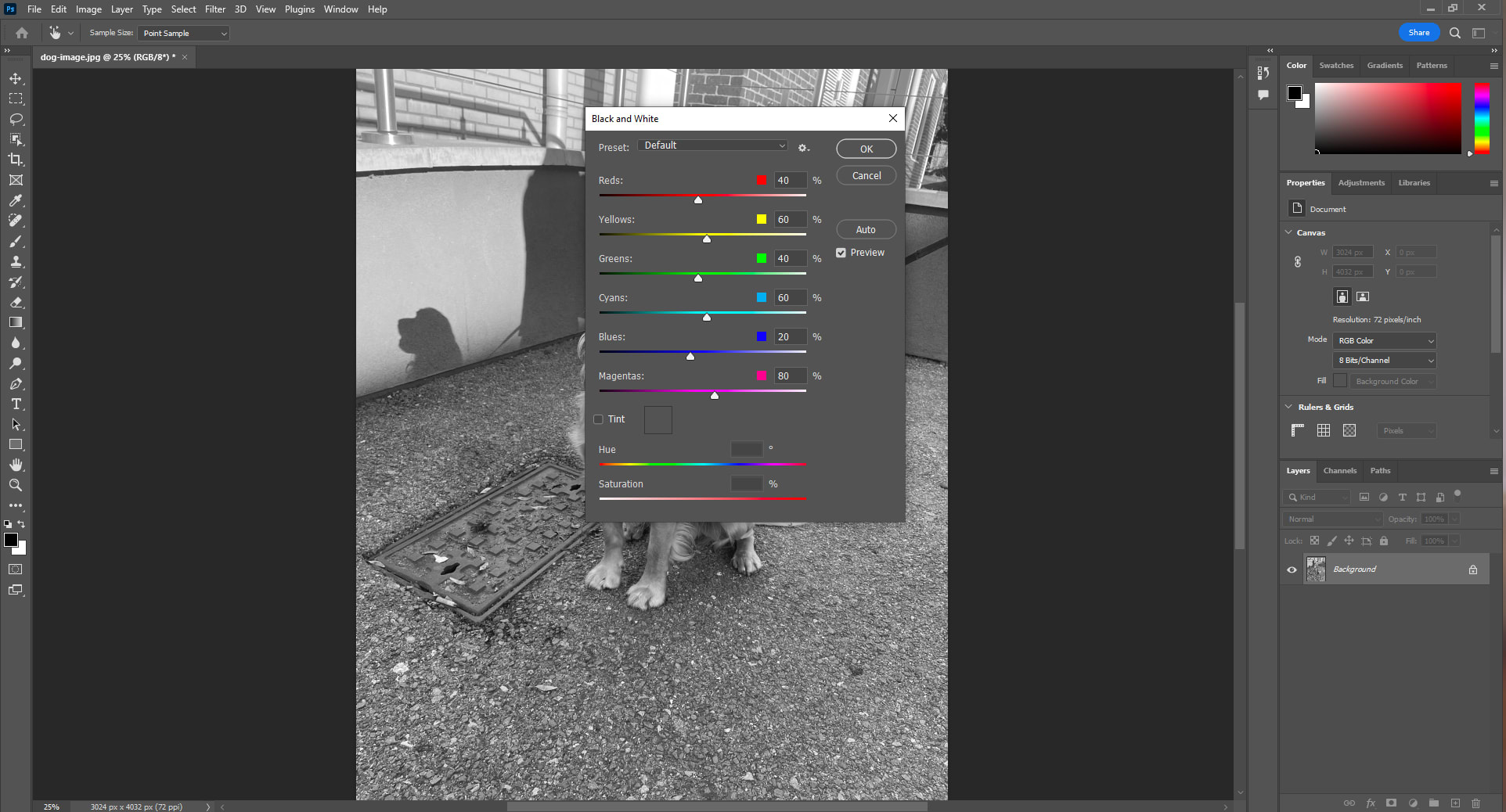 Close the Black and White window as you don't need to adjust it.