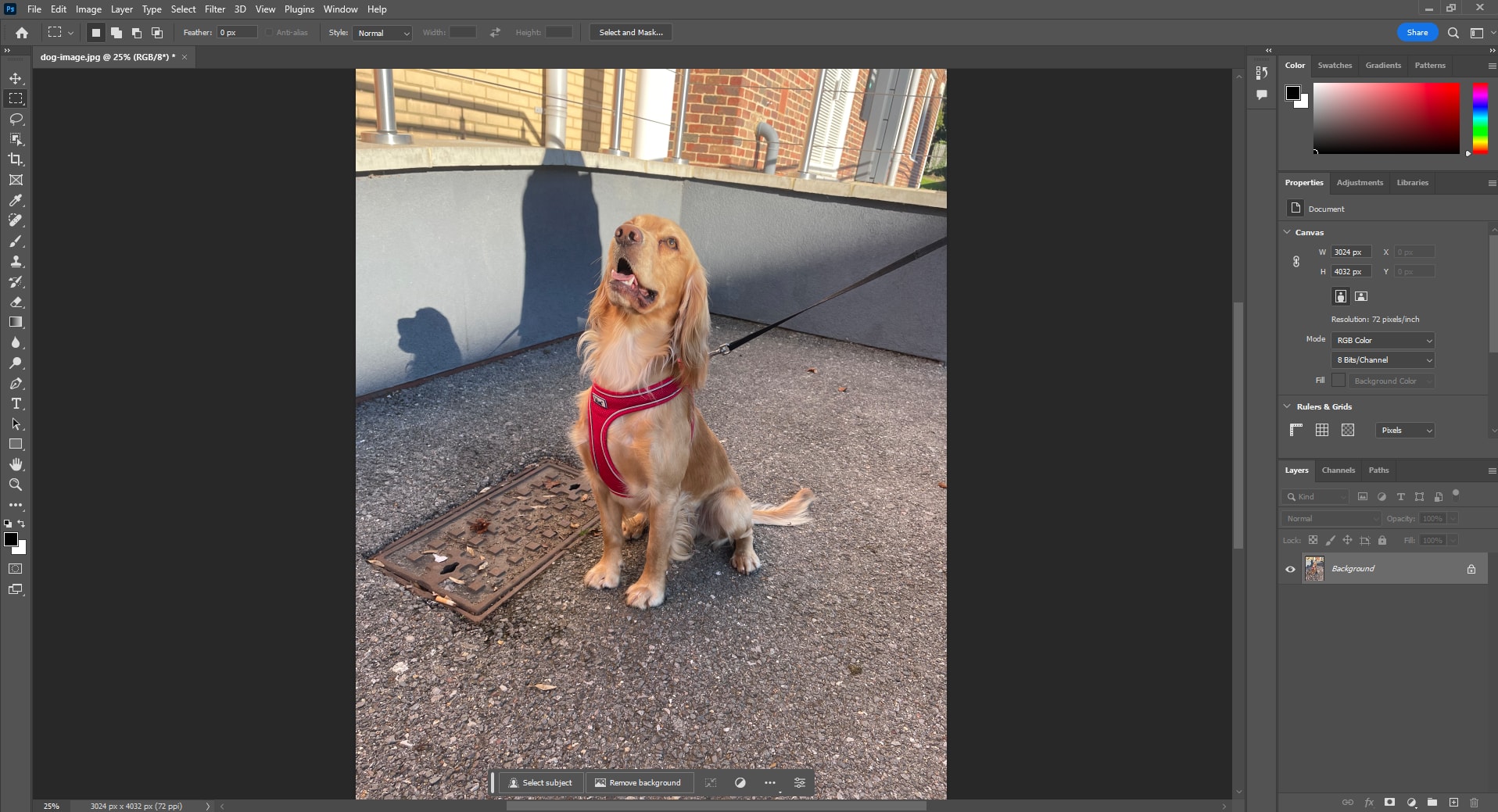 Over the next sections, I will guide you through creating an Anaglyph for the following picture of a dog I snapped outside the Middlesex Sheppard Library.