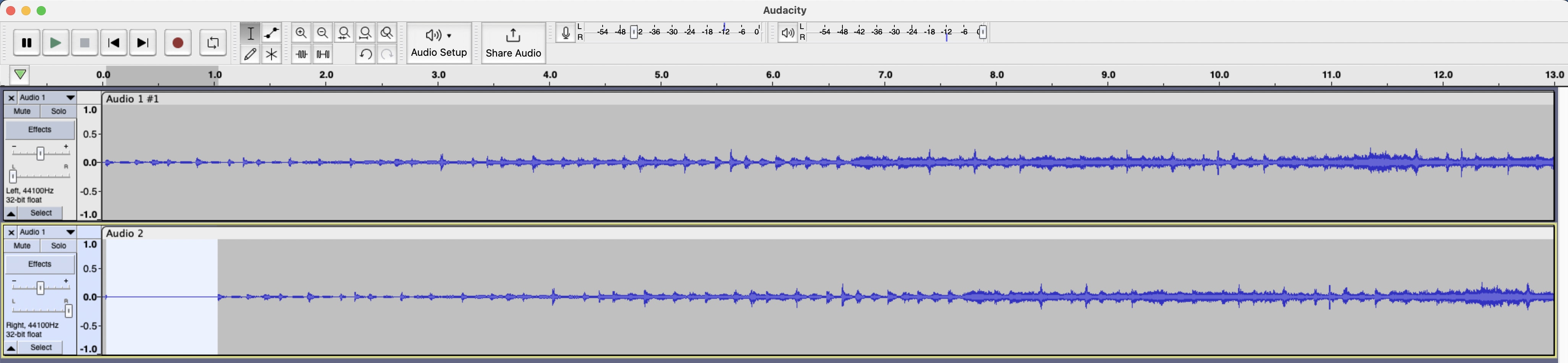 To create an overlap, copy and paste the channel with your sample audio, leaving you with two identical clips across two channels.