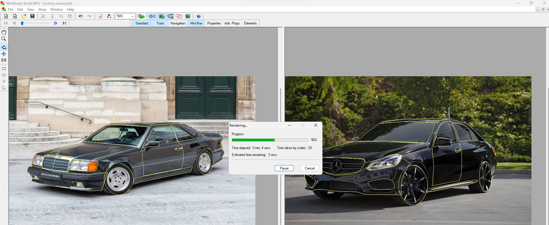 Through this lab, I learned about Morphing and its uses in the digital industry today. To have a hands-on feel of what Morphing can do, I practiced with the WinMorph software and used it to morph two generations of Mercedes E-Class vehicles into one.