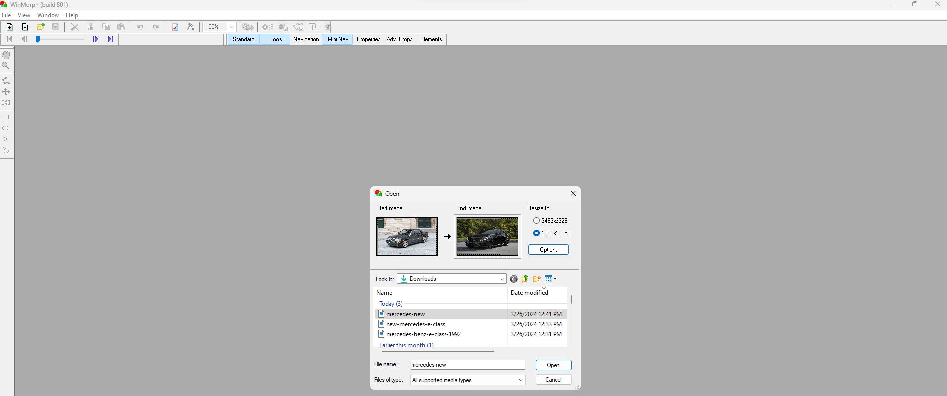 Before you morph your images, here is a preview of my trial at morphing vintage and modern cars of the same brand, model, and color.